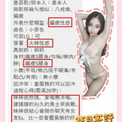 奶砲,毒龍,按摩,69,共浴,LG(舌吻)依氣氛衛生而定,可親嘴,無套吹,口爆,品鮑,舔蛋,奶推,屁推,顏射,絲襪(自備免付),玩具(按摩棒),玩具(跳蛋),情趣用品(客自備),中文溝通,快餐,2S