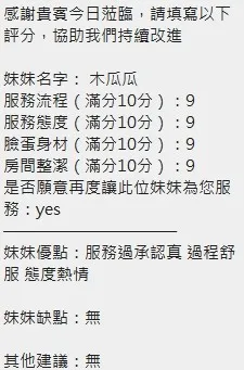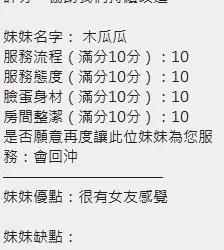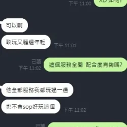 奶砲,毒龍,按摩,69,共浴,LG(舌吻)依氣氛衛生而定,可親嘴,無套吹,口爆,品鮑,舔蛋,奶推,屁推,顏射,水床浴,變裝(自備免付),絲襪(自備免付),無套做,無套內射,快餐,2S