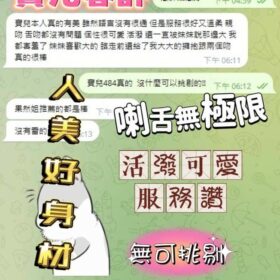 奶砲,按摩,69,殘廢澡,LG(舌吻)依氣氛衛生而定,可親嘴,無套吹,口爆,品鮑,舔蛋,奶推,屁推,冰火,顏射,絲襪,玩具(按摩棒),玩具(跳蛋),情趣用品(客自備),自慰秀,快餐,2S