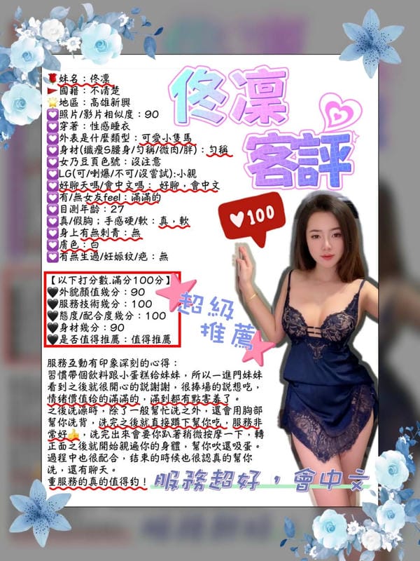 奶砲,按摩,桑拿,69,陪洗,共浴,殘廢澡,LG(舌吻)依氣氛衛生而定,可親嘴,無套吹,口爆,品鮑,奶推,屁推,冰火,冰塊(客自備),顏射,海底撈月,浴中蕭,深喉嚨,艷舞秀,絲襪,中文溝通,快餐,2S