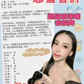 2S+500(60分),口爆+500,口爆吞精+1000,無套+1000(可內射),後門+1000(需戴套),無套後門+2000