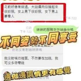 奶砲,按摩,69,共浴,LG(舌吻)依氣氛衛生而定,可親嘴,無套吹,品鮑,絲襪(自備免付),無套做,無套內射,快餐,NS