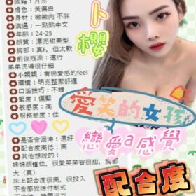奶砲,按摩,69,共浴,殘廢澡,泰國浴,LG(舌吻)依氣氛衛生而定,可親嘴,無套吹,口爆,足交,品鮑,舔蛋,奶推,屁推,顏射,浴中蕭,深喉嚨,變裝(自備免付),絲襪(自備免付),中文溝通,快餐,2S,包夜