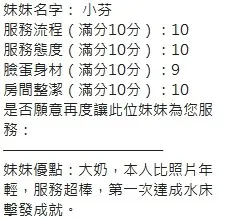2S+500(60分)、顏射+500、口爆+500、水床浴+300、無套內射+1000
