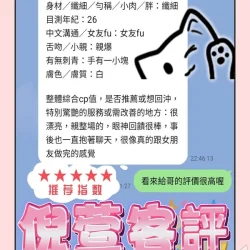 奶砲,按摩,69,共浴,LG(舌吻)依氣氛衛生而定,可親嘴,無套吹,口爆,舔蛋,中文溝通,快餐,2S,包夜