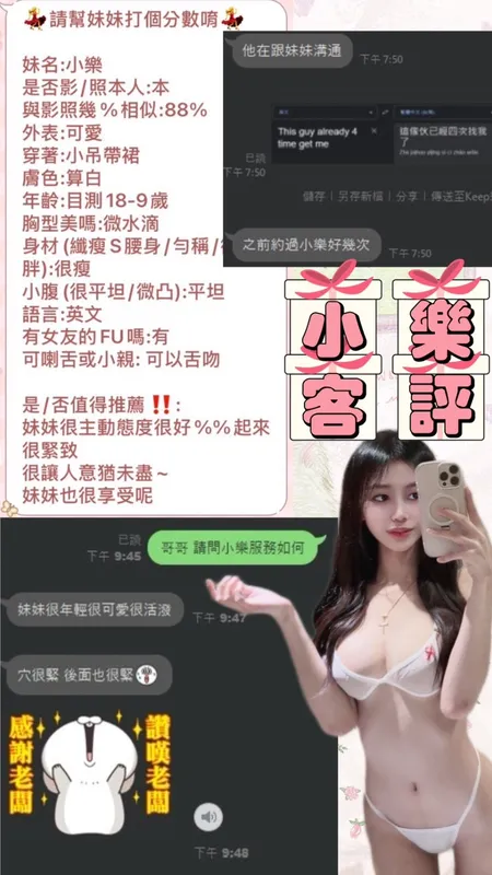 2S+500(60分)、口爆+500、顏射+500、無套外射+1000、後門+1000、攝影+1000(不露臉)