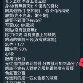 按摩,69,共浴,無套吹,口爆,足交,舔蛋,奶推,屁推,冰火,顏射,絲襪,玩具(按摩棒),玩具(跳蛋),自慰秀,中文溝通,快餐,2S