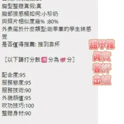 奶砲,按摩,69,共浴,LG(舌吻)依氣氛衛生而定,可親嘴,無套吹,品鮑,舔蛋,奶推,屁推,冰火,顏射,絲襪,玩具(按摩棒),玩具(跳蛋),快餐,2S