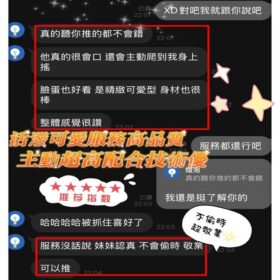 奶砲,毒龍,按摩,69,共浴,LG(舌吻)依氣氛衛生而定,可親嘴,無套吹,口爆,吞精,品鮑,舔蛋,奶推,屁推,顏射,浴中蕭,變裝(自備免付),絲襪(自備免付),玩具(按摩棒),玩具(跳蛋),情趣用品(客自備),無套做,自慰秀,攝影,快餐,2S,包夜