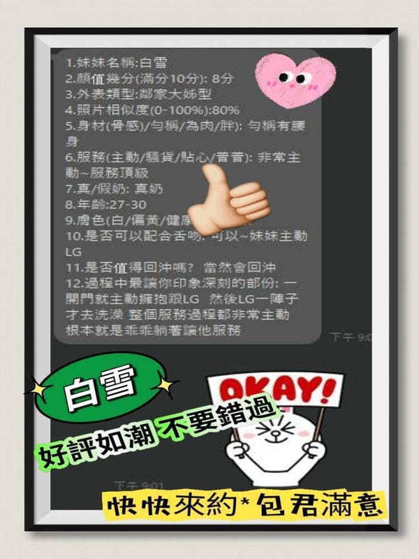奶砲,毒龍,按摩,69,殘廢澡,LG(舌吻)依氣氛衛生而定,可親嘴,無套吹,口爆,品鮑,舔蛋,無套做,後門,自慰秀,攝影,快餐,2S,包夜