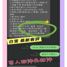 2S+500(60分)、口爆+500、後門+1000、無套外射+1000、自慰秀+500、攝影+1000