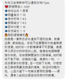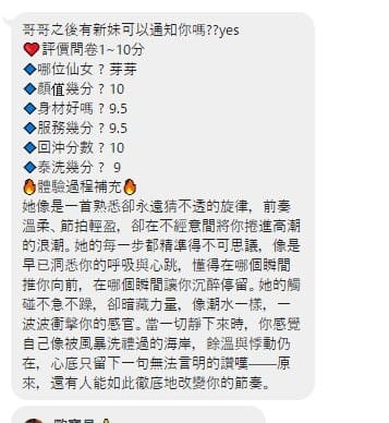 奶砲,毒龍,按摩,69,LG(舌吻)依氣氛衛生而定,可親嘴,無套吹,口爆,品鮑,舔蛋,顏射,水床浴,絲襪(自備免付),玩具(按摩棒),玩具(跳蛋),情趣用品(客自備),自慰秀,白人,英文溝通,快餐,2S,包夜