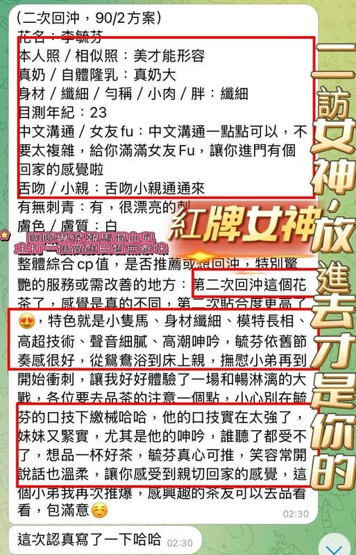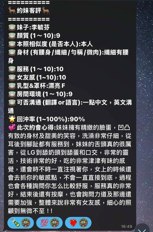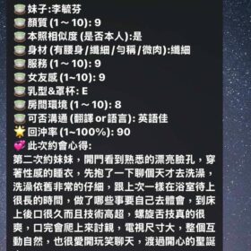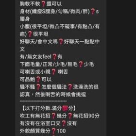 按摩,69,陪洗,共浴,LG(舌吻)依氣氛衛生而定,可親嘴,無套吹,口爆,品鮑,舔蛋,快餐,2S