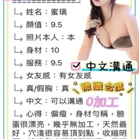 2S+500(60分)、顏射+500、入珠+500、自慰秀+500、艷舞秀+500、攝影+1000(不露臉)
