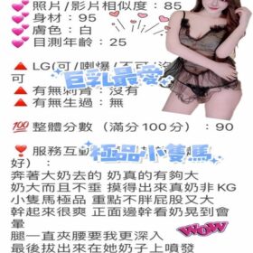 奶砲,按摩,69,共浴,LG(舌吻)依氣氛衛生而定,可親嘴,無套吹,品鮑,舔蛋,奶推,屁推,顏射,艷舞秀,變裝(自備免付),絲襪(自備免付),自慰秀,攝影,白人,快餐,2S