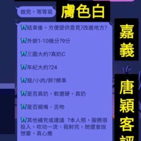 奶砲,按摩,69,共浴,殘廢澡,泰國浴,LG(舌吻)依氣氛衛生而定,可親嘴,無套吹,足交,品鮑,舔蛋,奶推,屁推,浴中蕭,深喉嚨,變裝(自備免付),絲襪(自備免付),玩具(按摩棒),玩具(跳蛋),情趣用品(客自備),自慰秀,攝影,中文溝通,快餐,包夜
