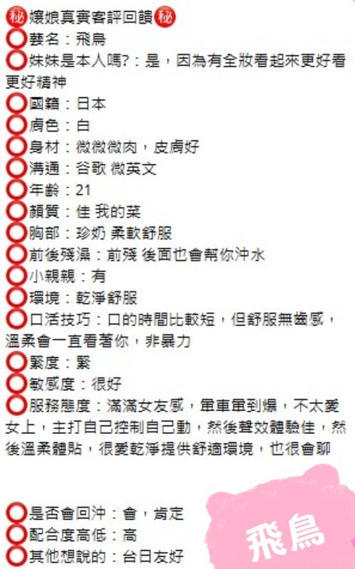 情趣用品+1000、自慰秀+1000、無套內射+4000、攝影+4000(不露臉)