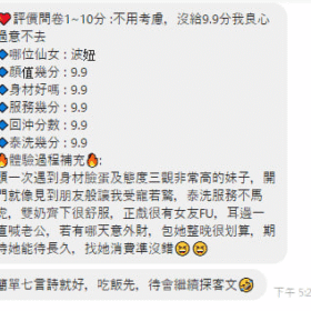 2S+500(60分)、絲襪+100、顏射+500、口爆+500、水床+500、攝影+1000(不露臉)