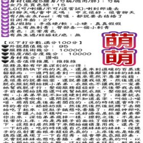 奶砲,69,殘廢澡,LG(舌吻)依氣氛衛生而定,可親嘴,無套吹,口爆,品鮑,舔蛋,變裝(自備免付),絲襪(自備免付),自慰秀,中文溝通,快餐,2S,包夜