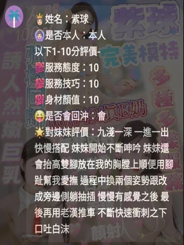 2S+500、口爆+500、顏射+500、無套外射+1000、口爆吞精+1000、自慰秀+500