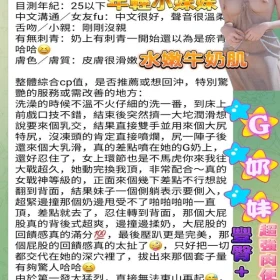 奶砲,按摩,69,殘廢澡,LG(舌吻)依氣氛衛生而定,可親嘴,無套吹,舔蛋,漫遊,奶推,冰火,顏射,深喉嚨,絲襪(自備免付),白人,中文溝通,快餐,2S,包夜