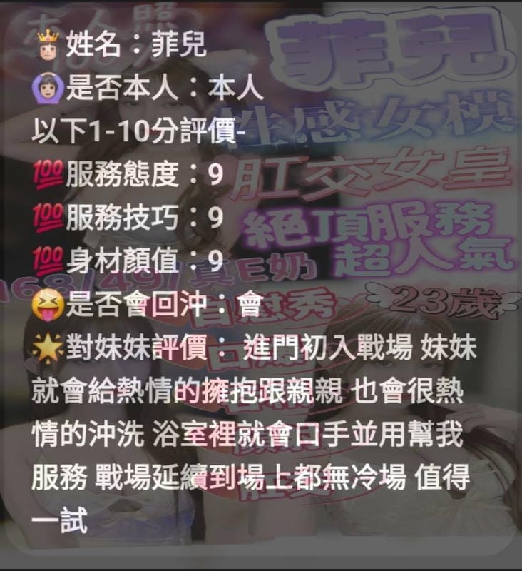 奶砲,毒龍,按摩,69,共浴,殘廢澡,泰國浴,LG(舌吻)依氣氛衛生而定,可親嘴,無套吹,口爆,吞精,品鮑,舔蛋,奶推,屁推,顏射,絲襪(自備免付),玩具(按摩棒),玩具(跳蛋),情趣用品(客自備),後門,自慰秀,快餐,2S,NS,包夜
