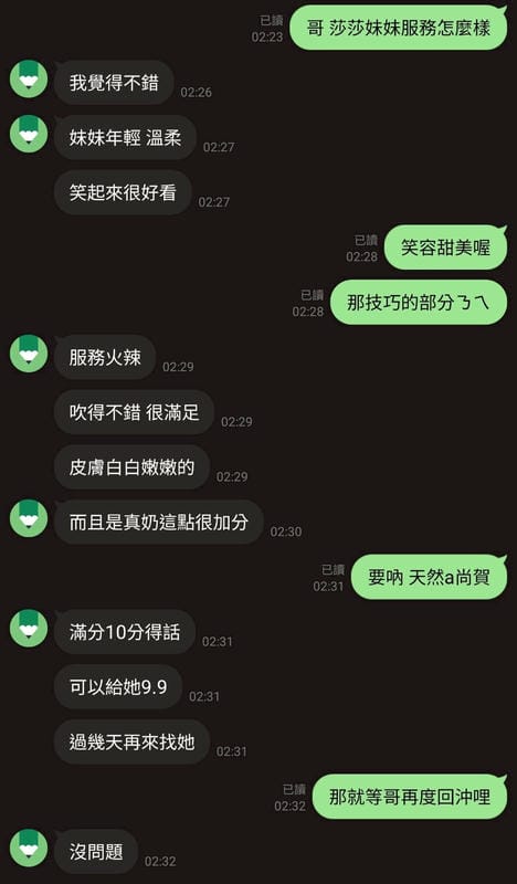 2S+500、口爆+500、無套外射+1000