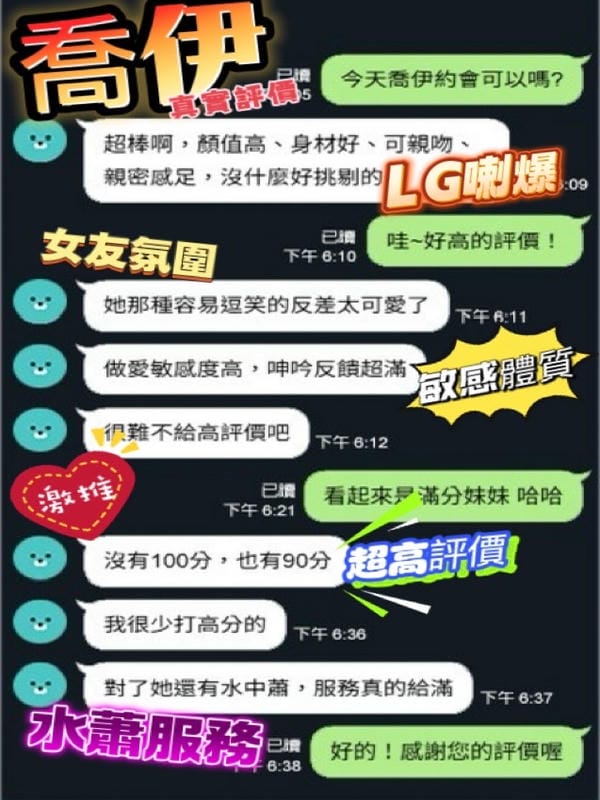 奶砲,按摩,69,共浴,LG(舌吻)依氣氛衛生而定,可親嘴,無套吹,品鮑,舔蛋,屁推,顏射,浴中蕭,絲襪,玩具(按摩棒),玩具(跳蛋),情趣用品(客自備),無套做,無套內射,快餐,2S,NS,包夜