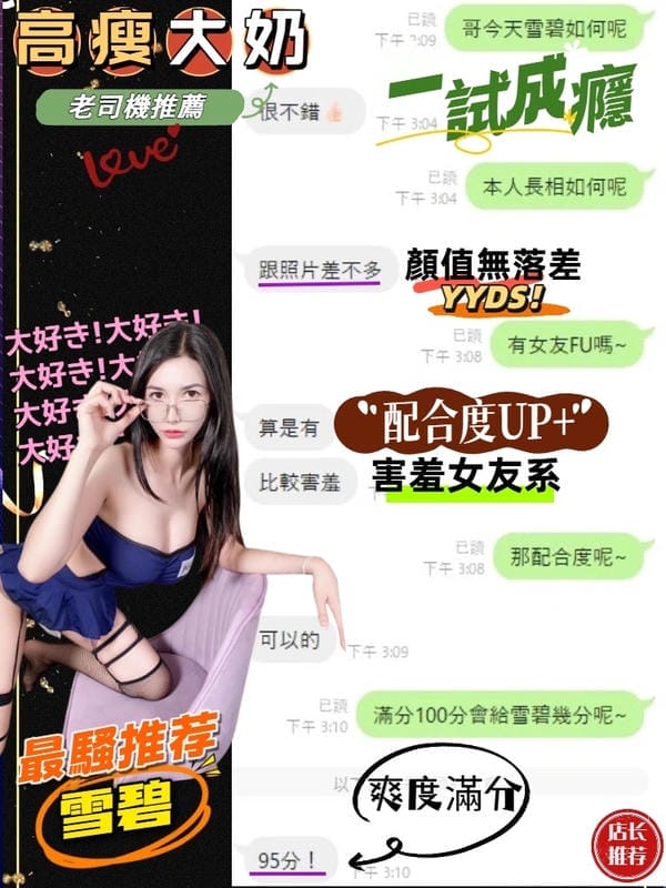 2S+500(60分)、顏射+500、口爆+500、無套內射+1000、後門+1000、入珠+300、自慰秀+300、絲襪+100