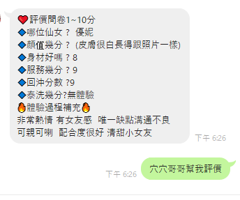 奶砲,按摩,69,共浴,LG(舌吻)依氣氛衛生而定,可親嘴,無套吹,品鮑,水床浴,艷舞秀,絲襪(自備免付),快餐,2S,NS,包夜