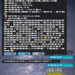 奶砲,按摩,69,共浴,殘廢澡,LG(舌吻)依氣氛衛生而定,可親嘴,無套吹,品鮑,舔蛋,輕功,顏射,快餐,2S