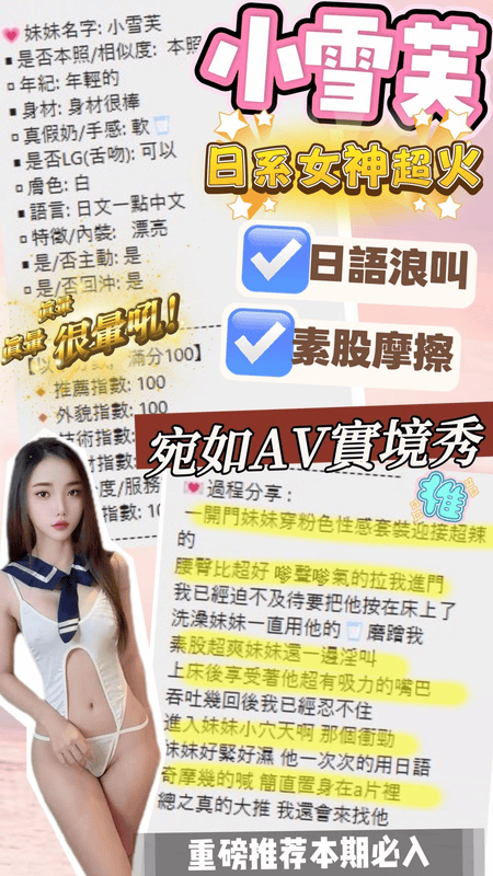 2S+500 , 顏射+500 , 口爆+500 , 吞精+500 , 自慰秀+500 , 情趣用品(客自備)+500