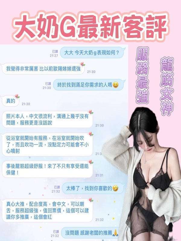 奶砲,按摩,69,共浴,LG(舌吻)依氣氛衛生而定,可親嘴,無套吹,口爆,足交,品鮑,舔蛋,顏射,艷舞秀,變裝,自慰秀,攝影,中文溝通,快餐,2S