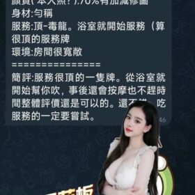 奶砲,毒龍,按摩,69,陪洗,共浴,LG(舌吻)依氣氛衛生而定,可親嘴,無套吹,口爆,吞精,足交,品鮑,舔蛋,冰火,顏射,深喉嚨,變裝,玩具(按摩棒),玩具(跳蛋),情趣用品(客自備),自慰秀,攝影,快餐,2S