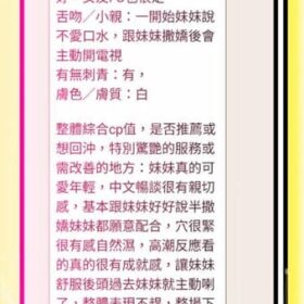 奶砲,按摩,69,共浴,LG(舌吻)依氣氛衛生而定,可親嘴,無套吹,品鮑,舔蛋,快餐,2S,包夜
