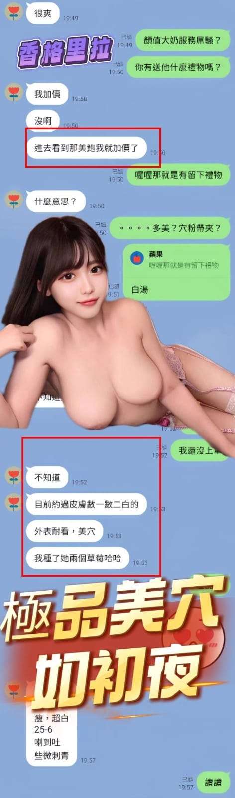 2S+500、自慰秀+500、口爆+500、清槍+500、艷舞秀+500、無套內射+1000、攝影+1000(不露臉)