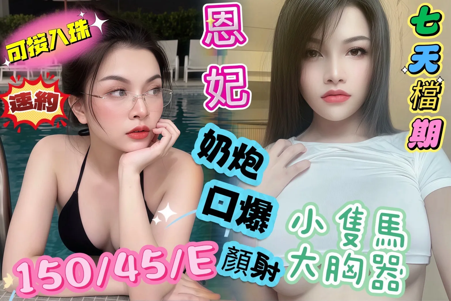 奶砲,按摩,69,共浴,可親嘴,無套吹,口爆,品鮑,奶推,顏射,自慰秀,快餐,2S