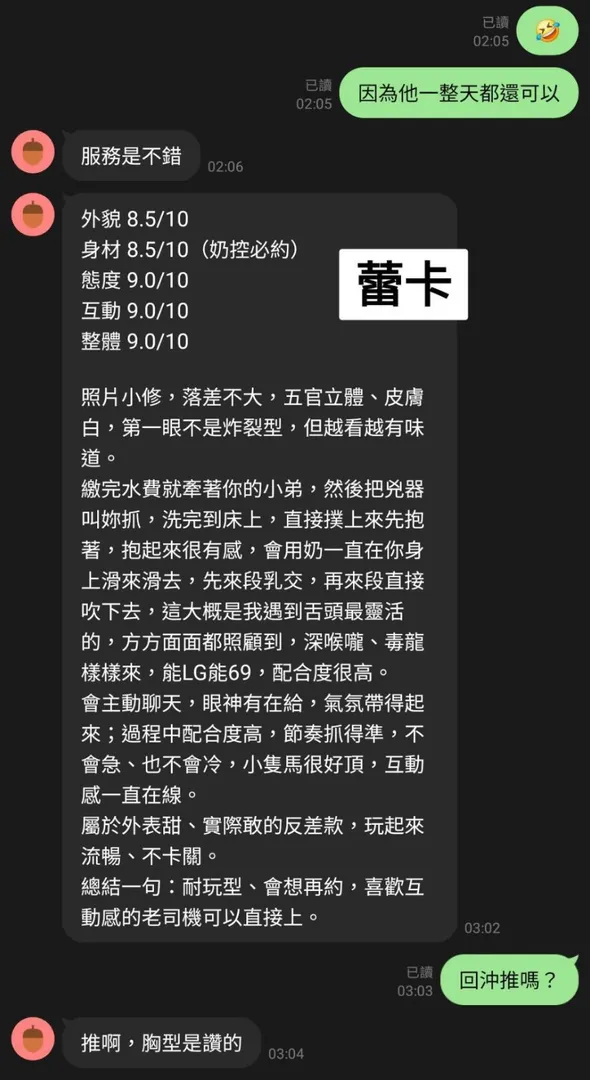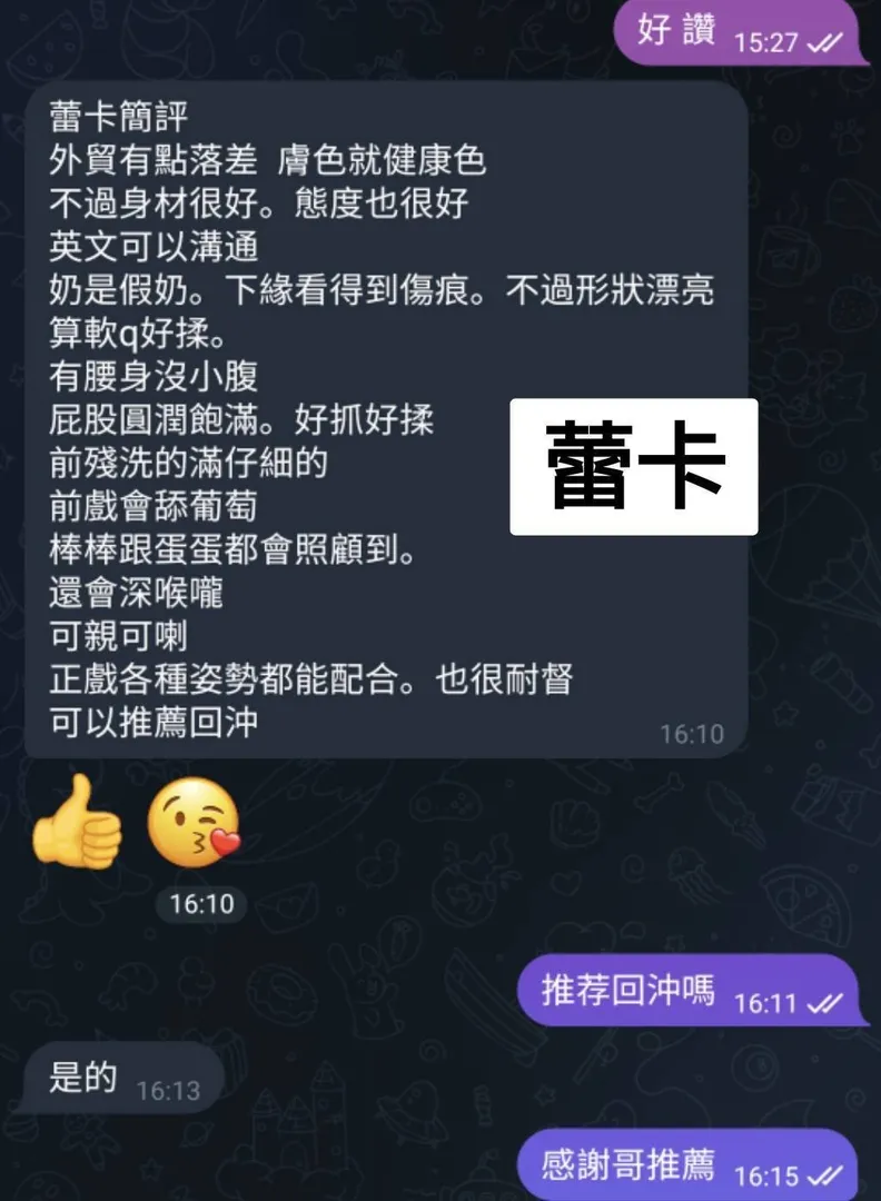 奶砲,按摩,69,殘廢澡,LG(舌吻)依氣氛衛生而定,可親嘴,無套吹,品鮑,舔蛋,奶推,屁推,浴中蕭,深喉嚨,變裝(自備免付),絲襪(自備免付),玩具(按摩棒),玩具(跳蛋),快餐,2S,包夜
