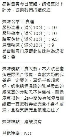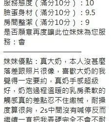 奶砲,按摩,69,共浴,LG(舌吻)依氣氛衛生而定,可親嘴,無套吹,品鮑,舔蛋,奶推,屁推,水床浴,變裝(自備免付),絲襪(自備免付),快餐,2S