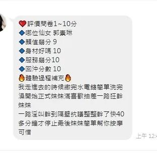 奶砲,按摩,69,共浴,LG(舌吻)依氣氛衛生而定,可親嘴,無套吹,品鮑,舔蛋,奶推,屁推,冰火,顏射,變裝,絲襪,玩具(按摩棒),玩具(跳蛋),自慰秀,快餐,2S