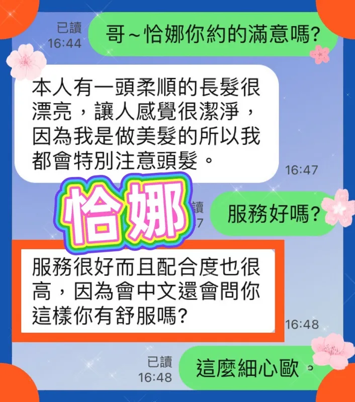奶砲,按摩,69,共浴,殘廢澡,LG(舌吻)依氣氛衛生而定,可親嘴,無套吹,口爆,品鮑,舔蛋,輕功,變裝(自備免付),絲襪(自備免付),無套做,無套內射,中文溝通,快餐,2S,包夜