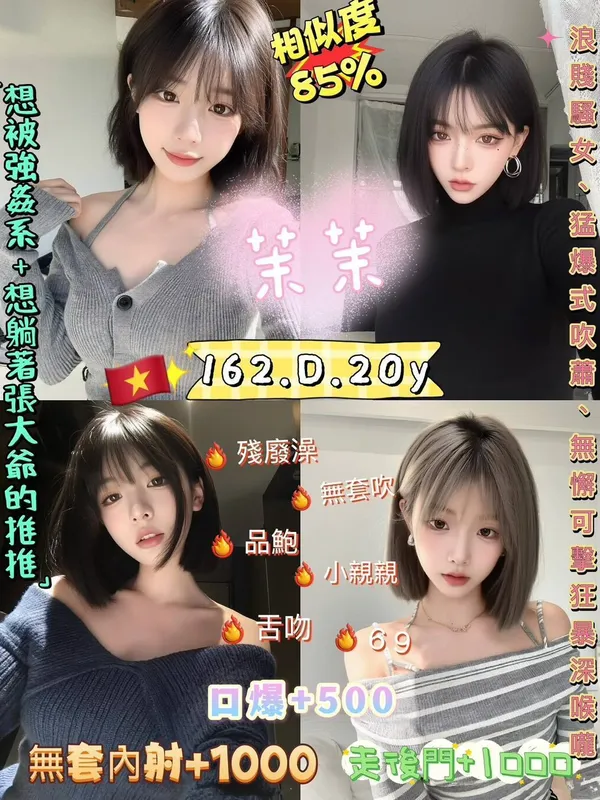 2S+500(60分)、無套內射+1000、口爆+500、後門+1000