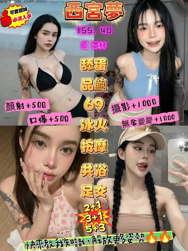 2S+500(60分)、口爆+500、顏射+500、攝影+1000(不露臉)、無套外射+1000