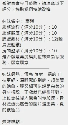 奶砲,按摩,69,陪洗,共浴,泰國浴,LG(舌吻)依氣氛衛生而定,可親嘴,無套吹,口爆,品鮑,舔蛋,奶推,屁推,顏射,水床浴,變裝(自備免付),絲襪(自備免付),英文溝通,快餐,2S,包夜
