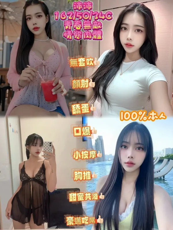 奶砲,按摩,69,共浴,可親嘴,無套吹,口爆,品鮑,舔蛋,奶推,屁推,顏射,絲襪,快餐,2S